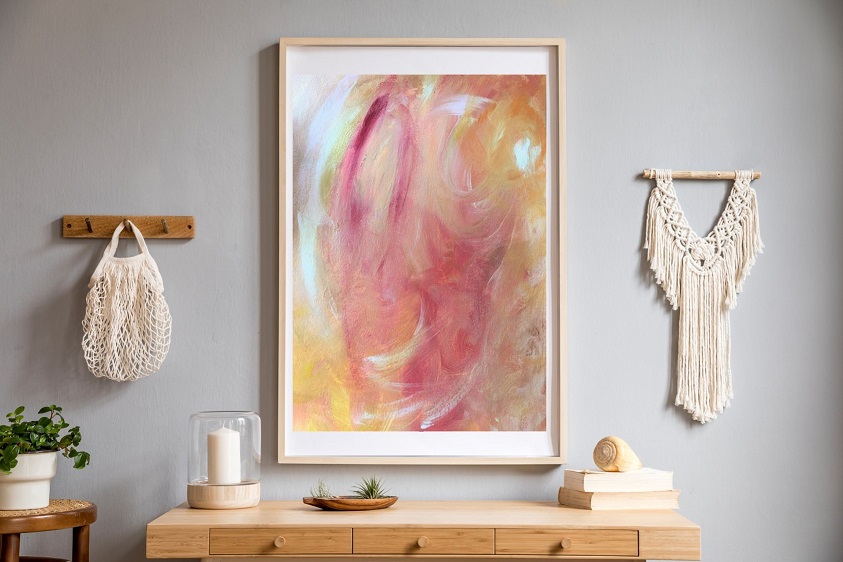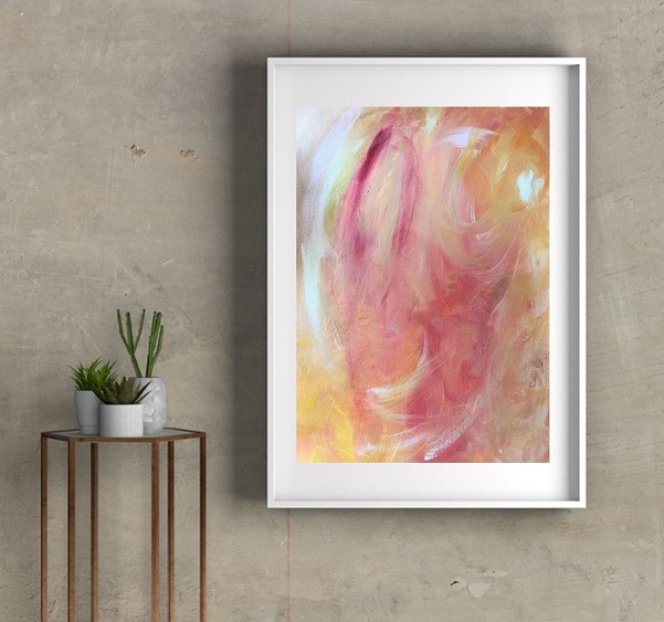 · “Peach time” es una obra abstracta de acrílico sobre cartulina Din A3, de 29,7cm x 42cm, inspirada en los melocotones de verano. VENDIDA.
